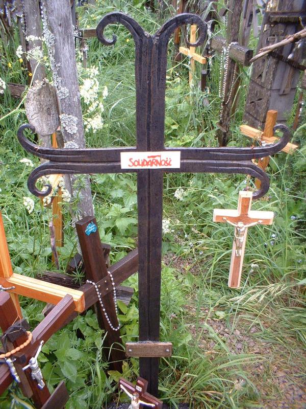 Szawle, krzyż ufundowany przez "Solidarność", zamieszczona intencja "O ODNOWĘ NARODU" |