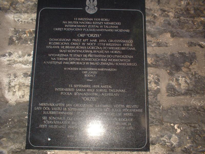 Tallin, tablica informująca o internowaniu ORP "ORZEŁ" |